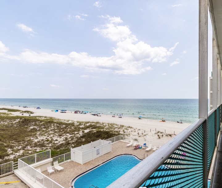 Uživajte u jutarnjoj kavi ili večernjem vinu na zajedničkom balkonu koji se prostire duž cijelog kompleksa, svega nekoliko koraka od pijeska. Na raspolaganju su vam velike ležaljke, roštilji i pogled na Meksički zaljev koji nema premca. Prostor uključuje brzi WiFi, kabelsku televiziju, klima-uređaj, grijanje i pristup praonici na licu mjesta.
