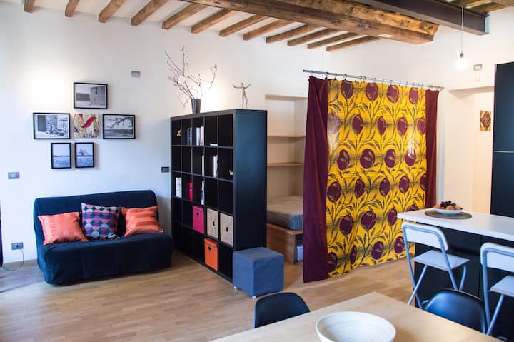 Otvoreni prostor nalazi se na prvom katu u dvorištu dvorca iz 17. stoljeća na trgu Piazza Vittorio Veneto. Smješten u centru, ali u isto vrijeme u tišini, idealan je za one koji žele prošetati gradom. Smještaj je u blizini svih glavnih turističkih atrakcija grada i svih glavnih usluga. Ispod kuće nalaze se izvrsni povijesni restorani i kafići.