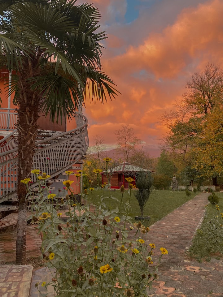 (Gamarjoba) Pozdrav! Moje ime je Anna. Ja sam iz prekrasne i nevjerojatne zemlje - Sakartvelo. Volim planine, šume, jezera i prirodu općenito. Moji roditelji i ja odlučili smo otvoriti gostinjsku kuću u šarmantnom kutku četvrti Samegrelo-Zemo Svaneti.