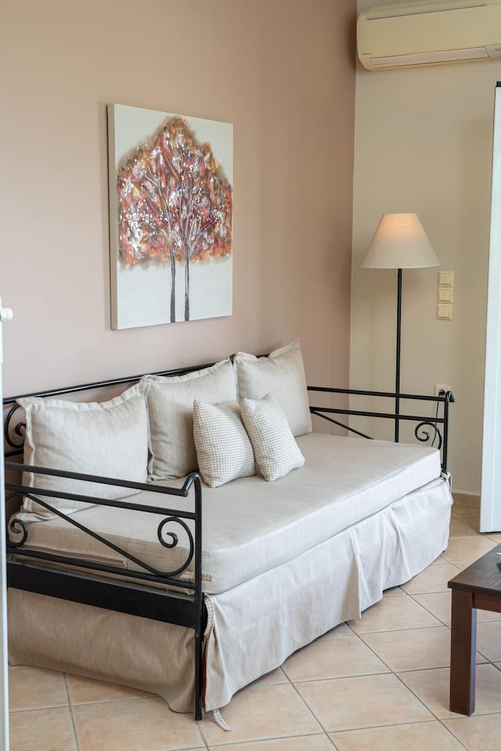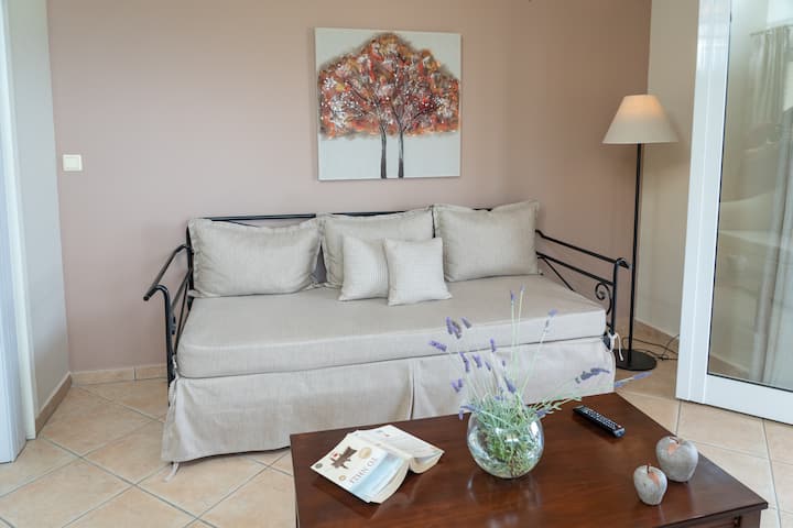 Moje ime je Angela. Živim i studiram u Patrasu u Grčkoj. Upravljam Marijinim stanovima za svoju majku Mariju, koja živi u Kefaloniji, gdje se nalaze stanovi. Dostupan sam za komunikaciju s našim gostima za sve što bi im moglo zatrebati. Govorim grčki, engleski i talijanski.