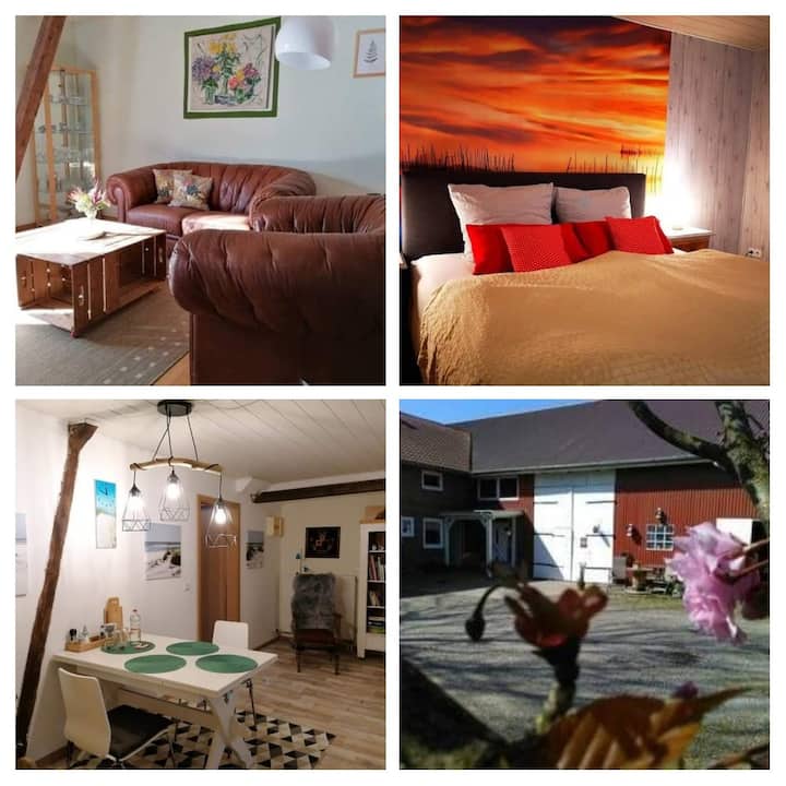 Živimo u našem Resthofu u Sjevernoj Friziji, na samoj granici s Danskom. Ovdje s nama žive pas i mačka, nekoliko ponija i naša mala djeca, a veliki vrt u blizini prirode naš je zajednički hobi. Vrlo smo sretni što možemo ugostiti naše goste ovdje i radujemo se uživanju u prirodi i miru. S vremena na vrijeme volimo putovati i otkrivati znamenitosti i krajolike u Njemačkoj ili Skandinaviji.