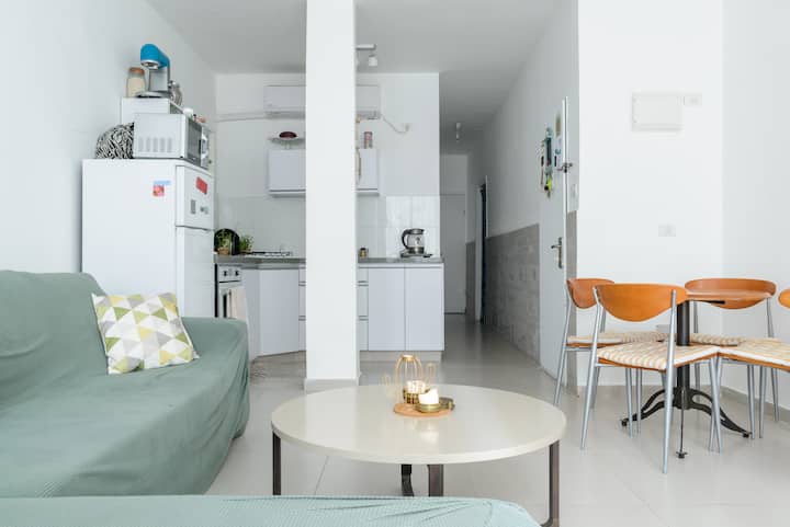 Živim u udobnom stanu u urbanom okruženju u Jaffi, pet minuta hoda od buvljaka, popularnih barova i luke Jaffa.