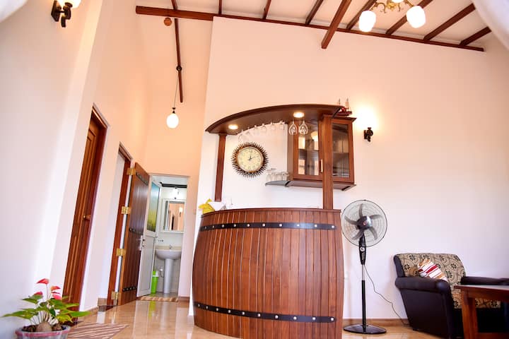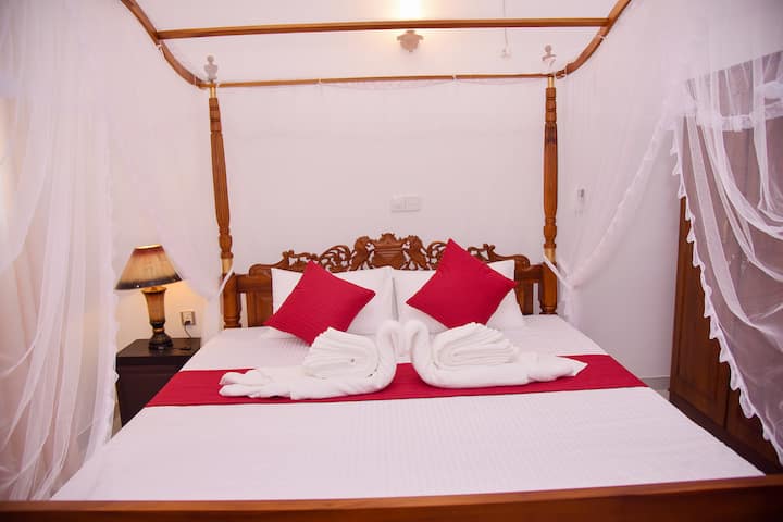 REGISTRIRAN U UPRAVI ZA RAZVOJ TURIZMA U ŠRI LANKI (SLTDA). Ovo je mjesto najbolje mjesto za gosta koji traži opuštanje i pouzdanu uslugu. Stan je okrenut prema pogledu na rijeku. Noćenje s doručkom nudi balkon. Ukusna jela mogu se pripremati na zahtjev. Odvojena kuhinja sa svom opremom za pripremu vlastitih jela. Također, postoji mnoštvo restorana koji se nalaze na udaljenosti od 10 minuta hoda. Bicikli,tuk tukovi,bilo koja vrsta vozila može se organizirati za obilaske i prijevoz od/do zračne luke, a za izvanredna istraživanja možete uživati u ljepoti obilazaka riječnih brodova Bentota, mogu se organizirati po atraktivnoj cijeni, kao i ribolov kao hobi u moru ili rijeci kao po vašem izboru. Za oslobađanje uma i duše ayurvedskih tretmana mogu se dogovoriti s pouzdanim akiranskim centrima. Za goste koji će u potpunosti ispuniti svoje potrebe bazare i namirnice su u krugu od 60 metara. Najbliža zračna luka je Međunarodna zračna luka Bandaranaike, 107 km od objekta. Plaža je udaljena 700 m od apartmana (pješačka udaljenost). Smješten u Bentoti s obližnjom rijekom Bentota. Tradicionalni doručak nudi se svaki dan. Govorimo engleski.