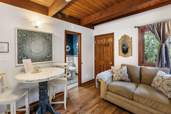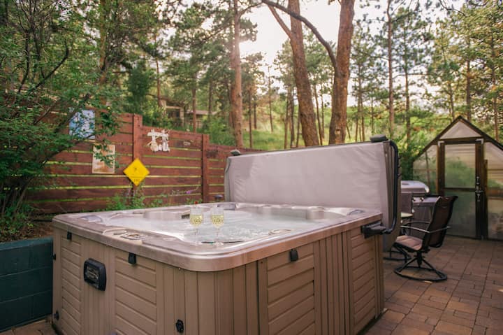 Planinski život u svom najboljem izdanju! Naš privatni junior apartman ima zaseban ulaz u našoj kući, a ima i privatnu masažnu kadu. Smješteni smo u veličanstvenim Stjenovitim planinama i udaljeni smo 10 – 20 minuta od Manitou Springsa, CO Springsa, Woodland Parka i 5 minuta od Pikes Peaka. Opustite se u luksuznoj sobi ili masažnoj kadi u privatnom dvorištu nakon dugog dana zabave. Savršeno mjesto za romantičare koji žele obilježiti neku posebnu prigodu. Obližnje odredište za skijanje, snowboarding, snow tubing, tople izvore i još mnogo toga.