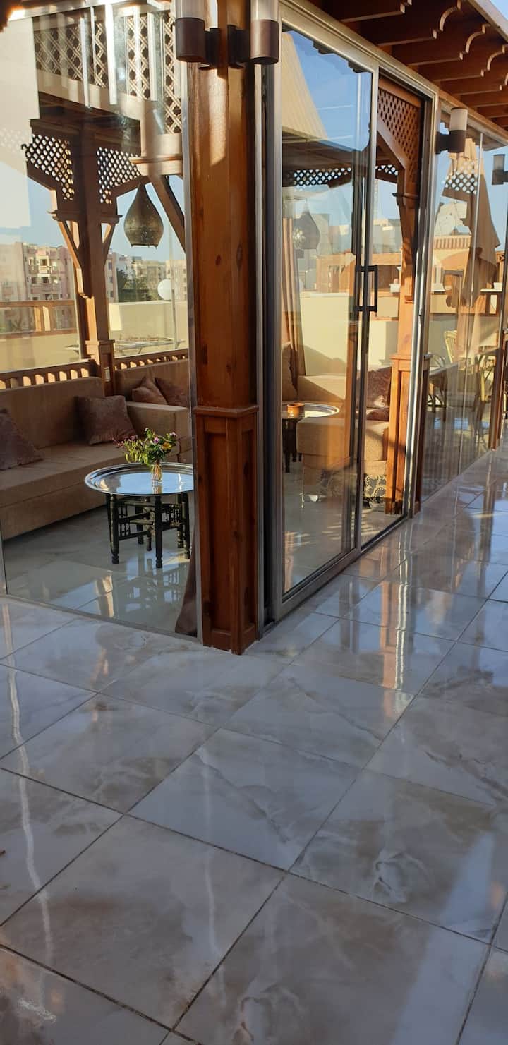 Romantični otvoreni prostor za boravak u sunčanom penthouseu