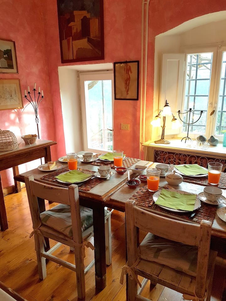 Preselila sam se iz Rima prije 35 godina tražeći prirodniji život za svoje troje djece. Svoj sam posao izgradio u Casa Mezzomonteu sa svoja tri stana i tijekom godina nastojao sam svojim gostima ponuditi jednostavno i ugodno mjesto gdje mogu provesti godišnji odmor osjećajući se kao kod kuće
