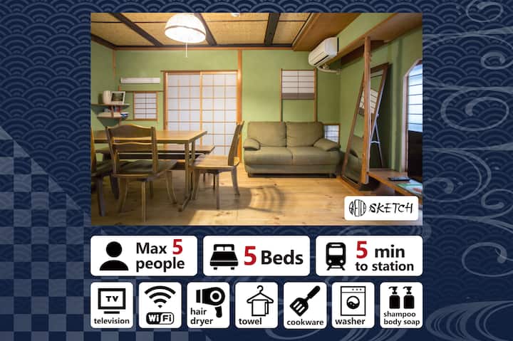 Kuća je renovirana kako bi svojim gostima pružila luksuznu udobnost, ali je osmišljena kako bi zadržala ugodan japanski osjećaj s duhom, estetikom i ljepotom tradicionalne kuće u nizu.