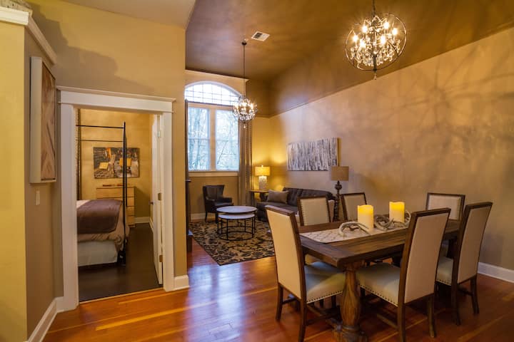 Uživajte u modernom luksuznom smještaju u lokalnoj povijesti u jednom od naših potpuno opremljenih apartmana. S stanovima koji mogu primiti do šest osoba, lako je isplanirati romantični boravak za dvoje ili avanturu s grupom. Kupite našu lokalnu tržnicu i pripremite našu lokalnu nagradu za sebe ili siđite niz stepenice kako biste pregledali svoj izbor na jednom od najboljih američkih gastronomskih odredišta.
