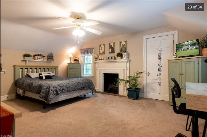 Udobno, kamin, privatni drugi kat, bračni krevet.