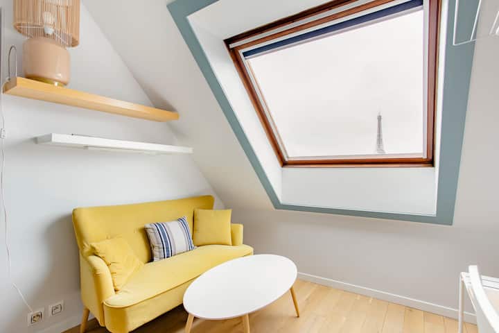 U blizini Eiffelovog tornja, metroa i trgovina.