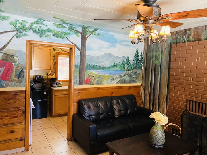Samo nekoliko koraka od The Villagea, snijega i Bear Creek Resorta ima i lokaciju i vrijednost na svojoj strani. S dvadeset i devet nedavno renoviranih objekata u rasponu od 4 hotelske sobe, 6 studija , 10 brvnara s jednom spavaćom sobom ,8 dvosobnih brvnara i 1 trosobnih brvnara . Sigurni smo da ćemo moći pronaći savršen smještaj za vaš sljedeći odmor. 3.3 Klima-uređaj na zemljištu s sezonskim bazenom i spa centrom (broj telefona koji je Airbnb sakrio) prostor za vjenčanje u San Franciscu i prostor za sjedenje na otvorenom u San Franciscu. Vanjski kamin, prostor za roštilj sa stolovima za piknik... komercijalna kuhinja , komercijalna kupaonica ... Svaka soba ima TV ravnog ekrana, besplatan Wi-Fi oko cijelog odmarališta , bazen dubine devet stopa i masažnu kadu. Odaberite smještaje koji nude balkone i trijemove s klupama u stilu trupaca za dodatnu udobnost. Pitajte o našim objektima s privatnim masažnim kadama. Nazovite nas na (broj telefona koji je Airbnb sakrio) ili rezervirajte online još danas! Odmaralište se nalazi 0,2 milje od Alpine Slide Snow Playa Manje od 1 milje od The Villagea 1 milju pristup jezeru 3 milje do Snow Summita 5 milja do Bear Mountaina 3 milje do najbliže trgovine.