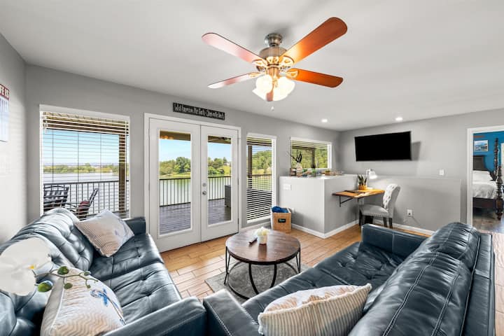 Dobro došli u svoje omiljeno mjesto na svijetu s najboljim zalascima sunca na jezeru, a sada s novim prostorom za sjedenje u ognjištu! Duboko snižen za hladnije mjesece, ali ipak odličan provod. Zamislite da se probudite uz kavu na stražnjoj terasi s pogledom na jezero, slušate ptice kako pjevaju i promatrate ribe plavih čaplji za doručak ili da sjedite na trijemu kako biste dočekali stado jelena koji tiho pasu u dvorištu ispred kuće. Željni ste uživati u vodi na jezeru? Potpuno novi produžetak hardscapea s ugrađenim ognjištem, prostorom za spuštanje kajakom i prostorom za sjedenje izgrađen je u siječnju 2024. godine. To će samo pridonijeti nevjerojatnom području u kojem ćete pronaći izbor kajaka i daski za veslanje za avanturiste te masažnu kadu za opuštenije! Fort Sunsets vrhunsko je mjesto za održavanje fizičkog razmaka s najboljim ribolovom na jezeru! Svako godišnje doba ima svoju ljepotu na jezeru. Dođite u ožujku i travnju na male i crappie ribolovne i basmasters turnire. Dođite ljeti i uživajte u jezeru i na otvorenom. Dođite u hladnijim mjesecima kako biste uživali u pogledu i blizini mnoštva zabave. Uživajte u prostoru s prekrasnim pogledom dok radite ili učite na daljinu. Dostupna je namjenska radna stanica s brzim optičkim internetom za vašu udobnost rada ili igranja.