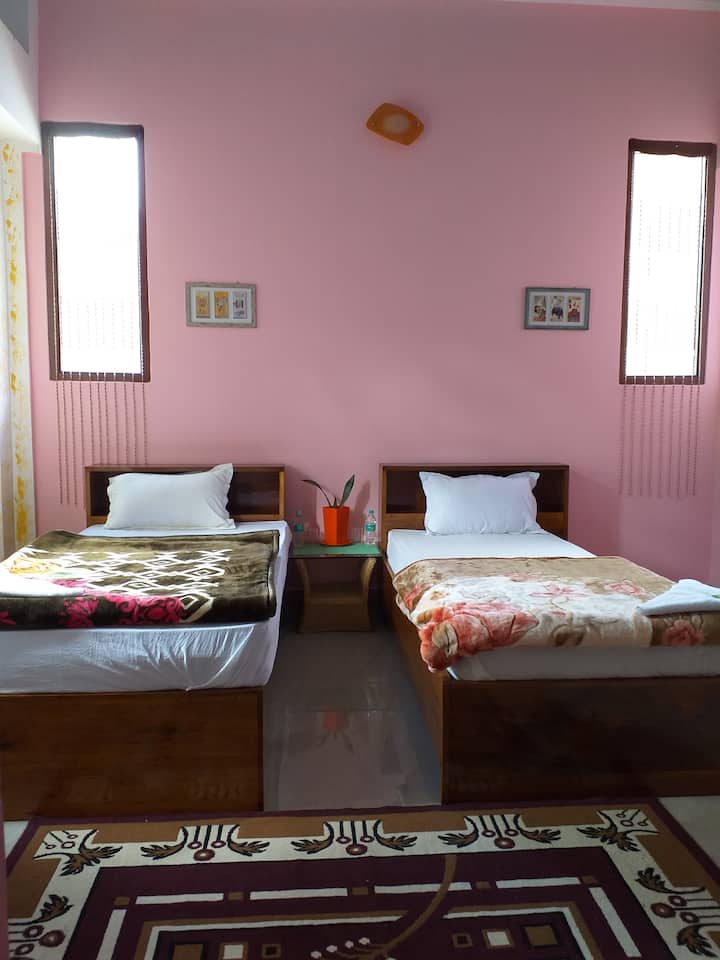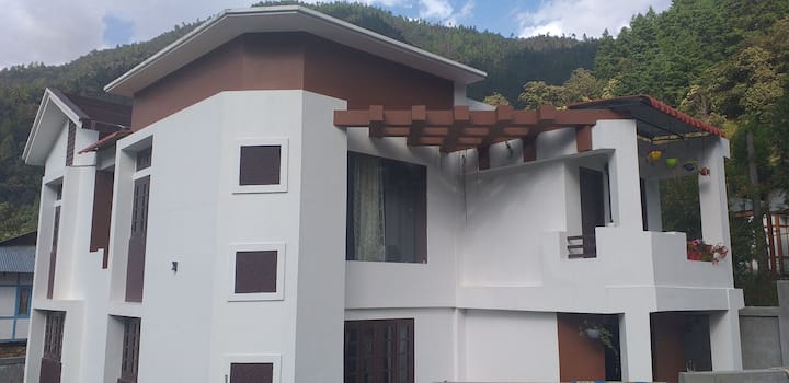 Mala privatna obiteljska kuća okružena vrtom s kivijem. To je domaćin koji živi u smještaju, a nalazi se u mirnom mjestu u malom gradu, Dirang.