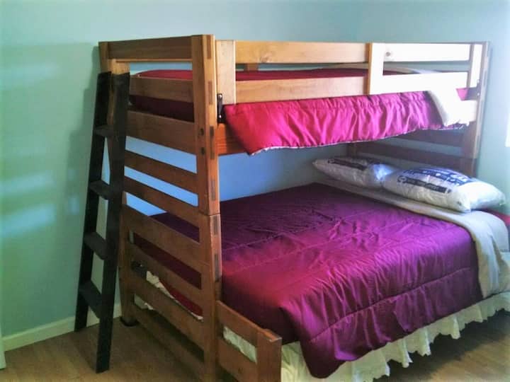 Vaši gostioničari su Al i Emmalee. Živimo u objektu u vlastitom domu, odvojenom od stambene zgrade. Kao gosti imate na raspolaganju naših 5 hektara, uključujući košarkaško igralište, dječju teretanu i nogometno igralište. Slobodno možete lutati brojnim vrtovima, samo sjediti ispod velikog trijema i uživati u prirodi ili boraviti u prostranom stanu, opustiti se, igrati igre ili gledati TV. U jesen 2019. u potpunosti smo ažurirali vaš stan kako bismo poboljšali vaše iskustvo.
