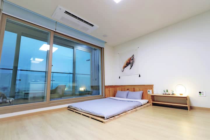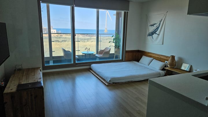 Smješteni na drugom katu, možete uživati u privatnom liječenju dok gledate fantastičan pogled na ocean, vjetrenjače Sinchang ~ Yongsu Coastal Road i prekrasne zalaske sunca.