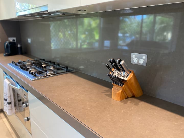 The entertainers’ kitchen is fully stocked and opens onto a deck with a BBQ—perfect for casual breakfasts or family feasts. Let the kids play in the backyard with a cubby house and slide (not fully fenced), while the front yard is ideal for a game of volleyball or badminton.