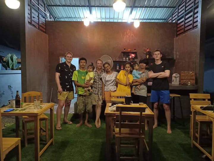 Mi smo mala privatna obitelj To je mirno mjesto, nema zabave, tržnice i restorani udaljeni su oko 2-3 kilometra od nas, ali imamo uslugu najma motocikala. Ovo je mjesto pogodno za ljude koji vole mir i jednostavnost, prirodno more i kulturu učenja. Samo 5 minuta hoda do mora.