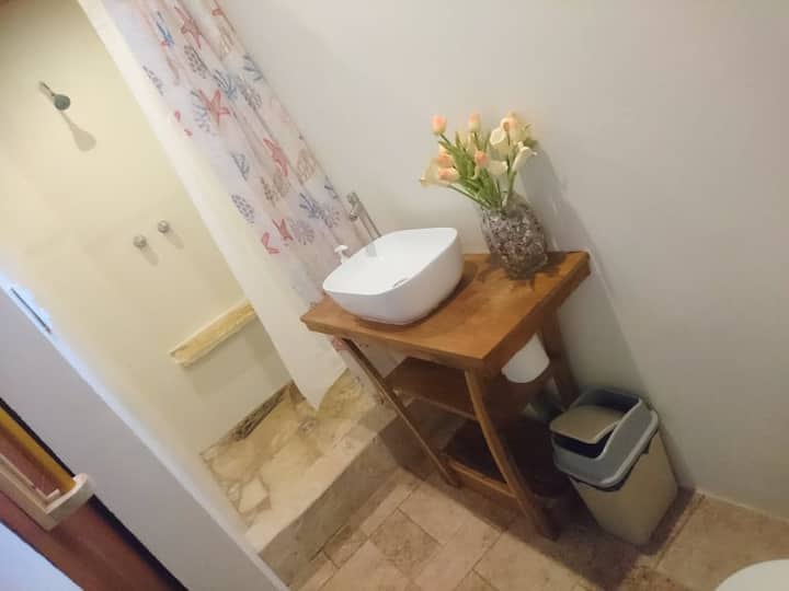 Your room will be shared with only your travel partners, but the whole house common areas are shared except for the kitchen. This includes a back patio with hammocks, two front terraces with hammocks and various other "chill" spaces. The dining area has huge hardwood slab table that accommodates 16, there's a television with Netflix,Youtube, Apple TV etc... Our central living room has a pool table, air hockey and dart board. We have an ice machine and all water is filtered and safe to drink. Of course the beach out front is the main feature but we do have 4 fat tire beach bikes free for you to use and explore the village!