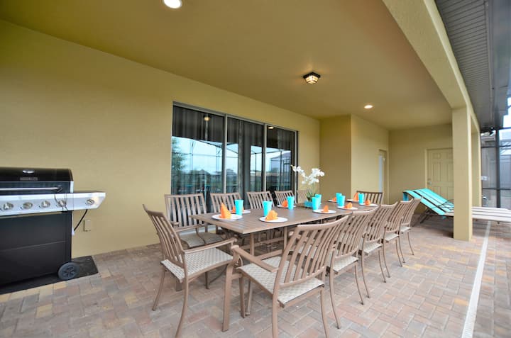 Vila s bazenom, 8 spavaćih soba, 6 kupaonica, pogled na jezero, u blizini Disneyja