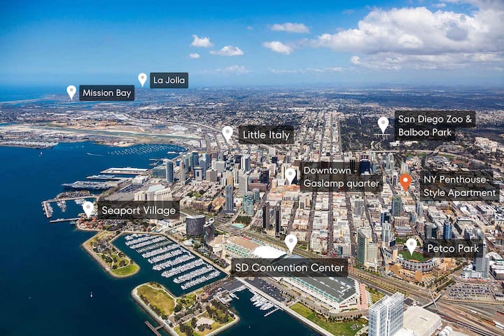 Ovaj zapanjujući trokatni dom savršeno odražava srž živahne četvrti Gaslamp u San Diegu. Glavni dnevni prostor može se pohvaliti stropovima od 6 metara s izloženim betonskim zidovima i industrijskom završnom obradom, zbog čega se prostor doima kao penthouse u New Yorku usred ove povijesne četvrti. Iako se nalazi usred gradske vreve, kamin i udoban namještaj čine da se osjećate kao kod kuće. Rezervirajte odmah i doživite ovaj nevjerojatni loft u središtu grada! 🏙️