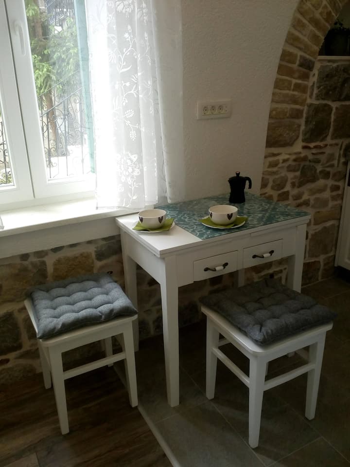 Zovem se Ines. Po struci sam psihologinja. Radim s mladim srednjoškolcima. Suprug Petar i ja smo godinama ulagali u uređenje prostora u kojem sada možete uživati. Oboje smo ljubitelji prirode, putovanja, knjige i starina. Uz posao, najveći dio vremena provodimo s naša dva dječaka i prijateljima. Srdačno ćemo vas primiti u svoj dom i pružiti vam zasluženo gostoprimstvo. Govorim engleski i talijanski jezik. Ako želite biti u središtu tipičnog dalmatinskog mjesta, volite zvukove živopisne mediteranske svakodnevice i želite biti dio našega načina života, naš apartman je vaš izbor.