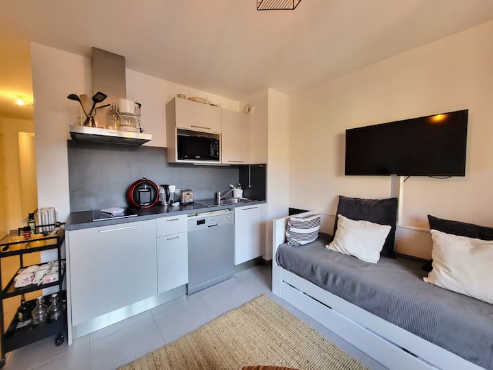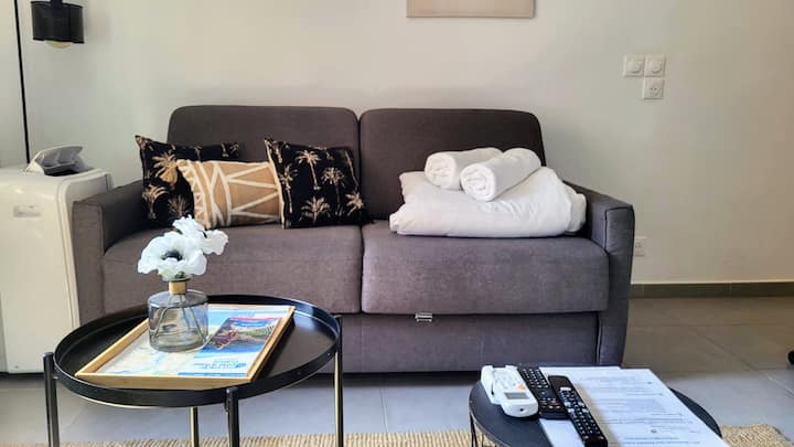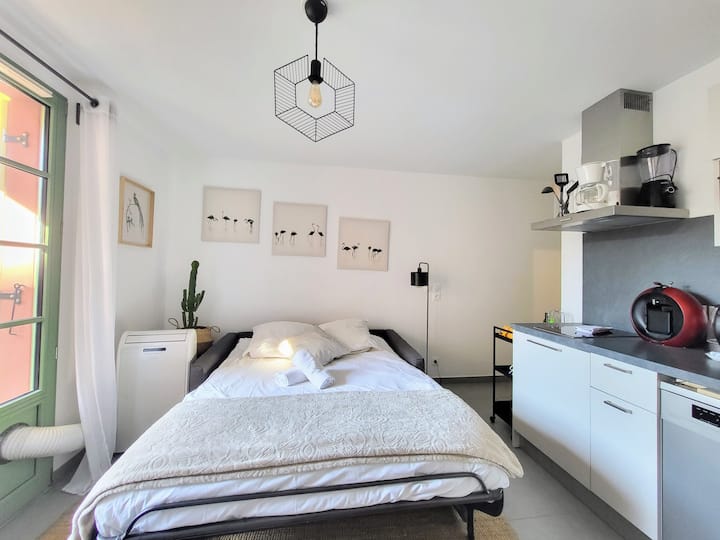 Želim vam dobrodošlicu u moj ugodan i udoban novi studio, visoko stojeću zgradu, izgrađenu u lipnju 2020. u srcu četvrti Port u Nici. Moj je stan površine oko 25 m2, s mobilnim klima-uređajem, nalazi se na 4. katu vrhunskog, sigurnog i vrlo nedavnog prebivališta, s liftom (potreban je kod za dizalo). Moj je stan moderan i prijateljski, ukusno uređen i savršeno opremljen za vaš boravak. Sastoji se od glavne prostorije s opremljenim kuhinjskim prostorom, prostrane kupaonice i ugodnog balkona s pogledom na dvorište, u bojama juga. Idealan je za 2 osobe.