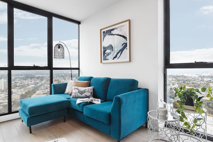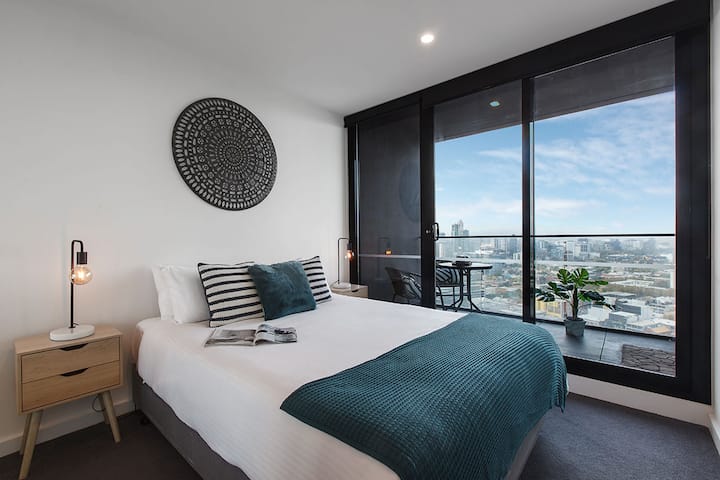 This is a beautifully styleled apartment, perfect located in Southbank, featuring Crown Casino and Clarendon St with its many cafes or enjoy a delicious dinner at one of the various restaurants followed by a visit to the local bars and pubs just a few minutes walk away. Sa zadivljujućim pogledom na zaljev Port Phillip Bay, to će zasigurno impresionirati!