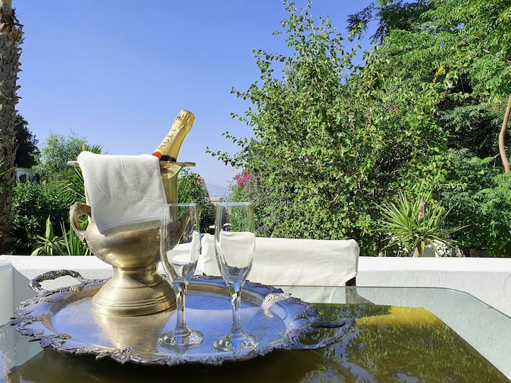 Opuštanje u stilu uz pogled na more i povijesni ugođaj: studio od 55 m2 može primiti do 4 osobe i opremljen je antiknim namještajem, kaminom, čajnom kuhinjom, tušem i prostranom verandom s pogledom na more. Uključuje klima-uređaj, pristup terasi za sunčanje i bistro-kafiću u sklopu objekta – idealno za parove, prijatelje ili male obitelji. Jedna od najljepših plaža udaljena je samo 10 minuta vožnje automobilom.