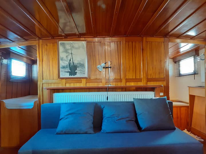 Pozdrav,! Moje ime je Hans, živim u kući na brodu u Ghentu i imam izvornu kuću za jedrenje koju mogu iznajmiti za vaš odmor. Sadržaji su potpuni i privatni. Iznajmljuje se u blizini centra. Dostupna su 2 bicikla.
