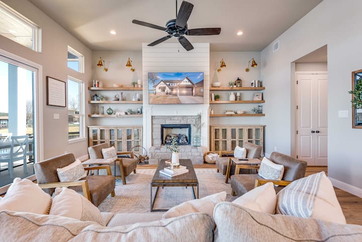 Granbury Retreat uz jezero s terasom i vanjskim ognjištem