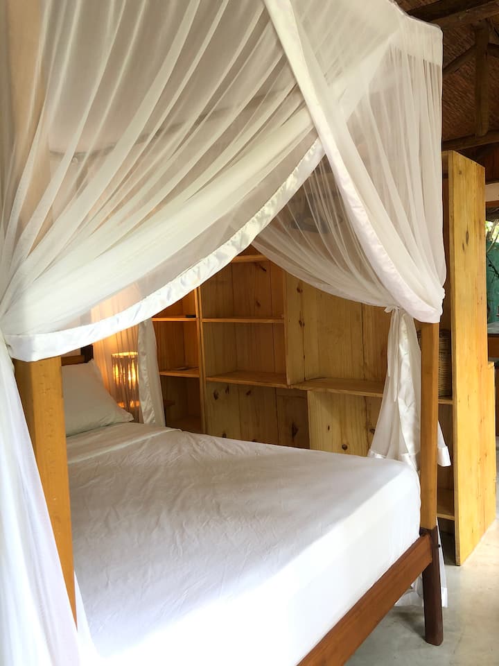 Nekoliko metara od mjesta slijetanja. Nalazimo se na zemljištu u blizini plaže i okrenuto prema rijeci Carava i njenom zalasku sunca, gdje je u isto vrijeme luka i ukusno odmaralište.