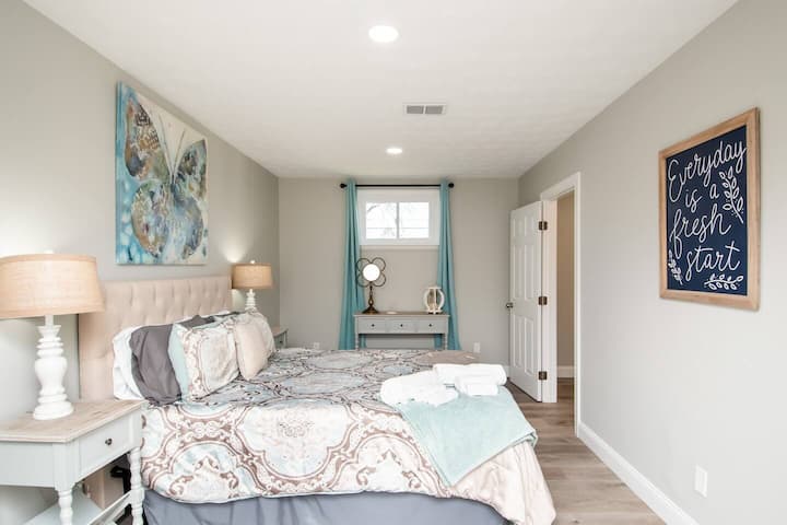 Ovaj novouređeni udobni bungalov s 2 spavaće sobe i 1 kupaonicom u mirnoj, dobro poznatoj stambenoj četvrti. Uživajte u spavaćoj sobi s velikim bračnim krevetom, drugoj spavaćoj sobi s dva velika kreveta, potpuno novoj kuhinji i kupaonici te opuštajućoj terasi u dvorištu. Potpuno opremljena kuhinja te kava Keurig i Cuisinart! Ovaj smještaj u centru grada može primiti do šest osoba i savršena je lokacija za vašu obitelj ili suradnike da uživaju u vašem boravku u Daytonu.