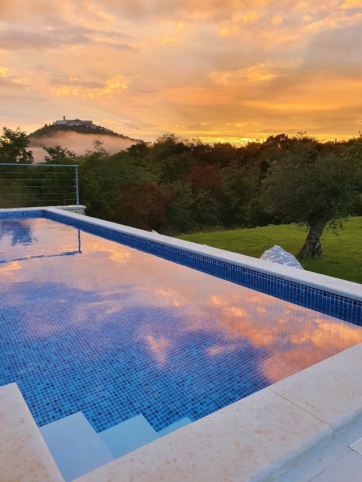 Motovun: vila s 4 spavaće sobe, bazenom i prelijepim pogledom