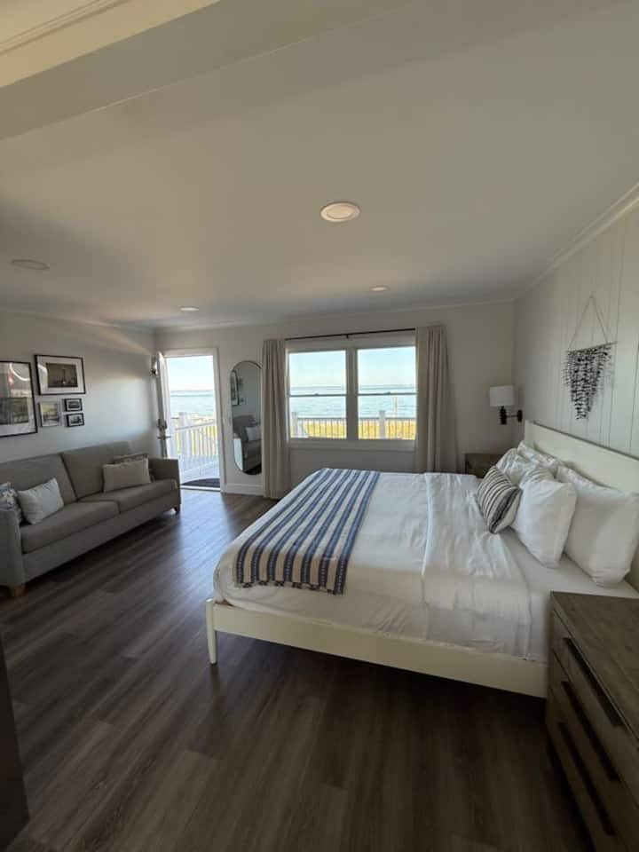 Uživajte u jednostavnom životu na plaži u zaljevu Great South Bay. Naši apartmani ističu se prekrasnim pogledom na Great South Bay, svjetionik Fire Island i kultne lukove na južnoj obali – mostove Robert Moses i Great South Bay. Profesionalno uređen interijer odiše pažnjom za detalje spajajući modernu sofisticiranost uz istovremeno odavanje počasti šarmu plaže Fire Islanda. Uživajte u putovanju bez pratnje, odmoru u dvoje, obiteljskom odmoru ili odmoru u grupi.