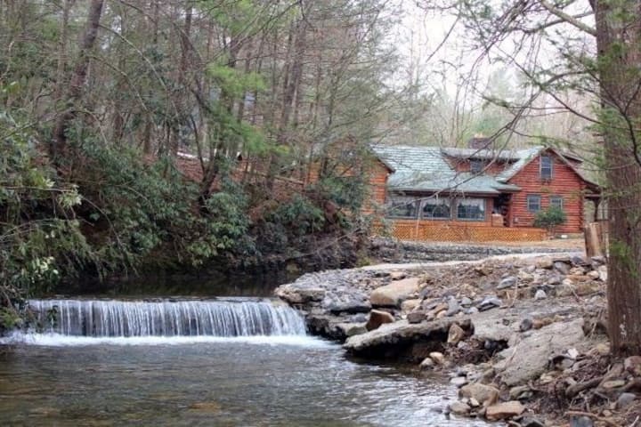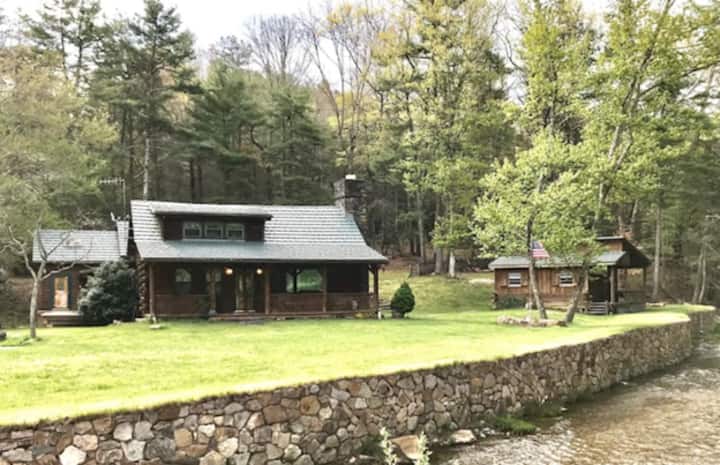 Prostrana brvnara uz potok s 4 spavaće sobe, pogodna za grupe