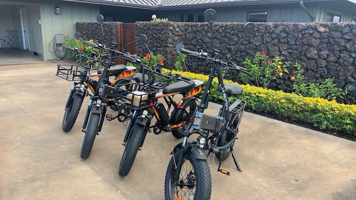 Uživajte u našoj kolekciji bicikala (za odrasle, mlade i djecu s kacigama i bravama) koja vam omogućuje da istražite odmaralište Waikoloa Beach. The bikes are great for going to the Kings Shops, Queens Shops, Luxury Cinemas, mini-golf, Hilton and Marriott hotels and historical grounds, or the many other wonderful places that Waikoloa Beach Resort has to offer.