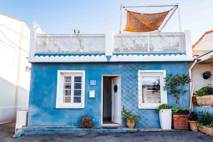 Plava kuća s pogledom na more i ugodan krov u Goudesu