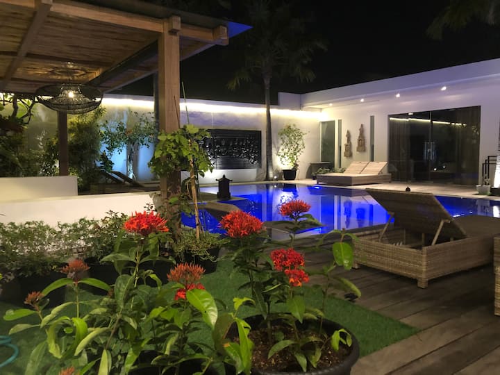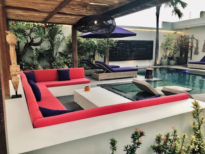 Prekrasno opremljena moderna vila, samo 5 minuta hoda do svjetski poznatih klubova Finns i Atlas, plaže Berawa i svih sadržaja