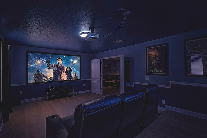 Filmske večeri nikad nisu bile bolje! Okupite obitelj u svojoj privatnoj kazališnoj dvorani s plišanim sjedalima i televizorom s velikim zaslonom. To je savršeno mjesto za opuštanje nakon dana provedenog u parkovima ili izležavanja uz bazen.