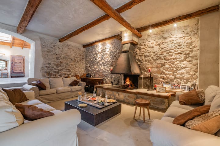 U srcu šarmantnog zaseoka u podnožju padina, renovirana kuća za skijanje, 300 godina stara na tri etaže s povijesnim zalaskom sunca.