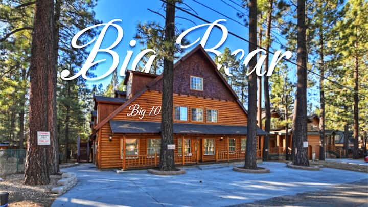 Big Bear Big 10 je veličanstvena luksuzna brvnara koja je udaljena 2 bloka od skijališta Snow Summit. Ova luksuzna dvokatnica lijepo je namještena i ima 7 spavaćih soba (6 vrhunskih apartmana) i 9,5 kupaonica, savršenih za vašu višestambenu grupu! Ovaj smještaj ima fantastičnu lokaciju; pješačka udaljenost do Snow Summita i nekoliko minuta do jezera, sela i trgovačkih područja u Big Bear Lakeu.