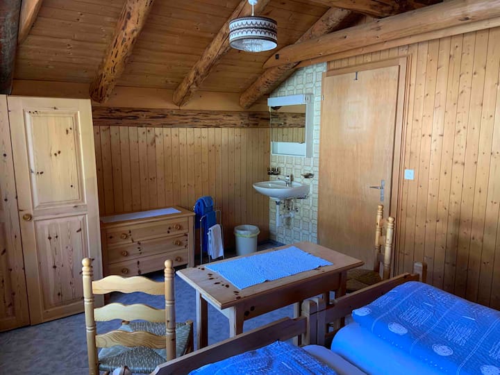Udobna dvokrevetna soba u stilu brvnare