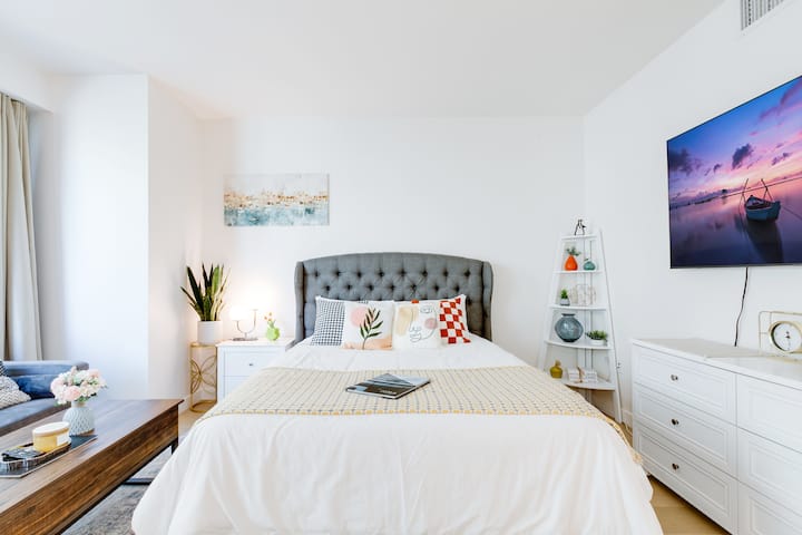 Namjerno uređen kako bi vaš boravak bio što udobniji, ovaj elegantni studio apartman u potpunosti je opremljen, ukusno dovršen i upravo tamo gdje želite biti. Prirodno svjetlo prodire kroz prozore od poda do stropa od trenutka kad uđete unutra, ističući vrhunsku završnu obradu i bogate drvene podove koji se nalaze u cijelom prostoru. Besprijekorna pažnja posvećena je uređenju ovog prekrasnog apartmana s posebnom pažnjom kako bi se maksimalno iskoristio svaki kvadratni centimetar i uljepšao vaš boravak.
