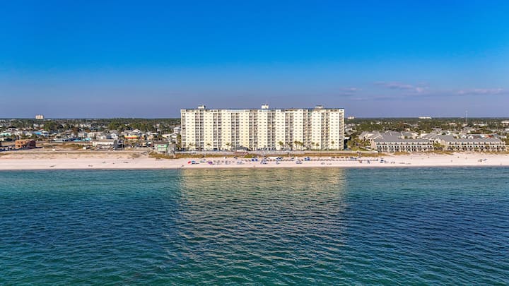 U ovom smještaju za odmor u Panama City Beachu čekaju vas topli sunčani dani i osvježavajući povjetarac. Ovaj pogled je zaista jedinstven! Zakoračite u ovaj kondominij s 2 kreveta i 2 kupaonice na 10. katu s potpuno opremljenom kuhinjom i privatnim balkonom s pogledom na pjenušavu zaljevsku vodu! Provedite dane izležavajući se pored bazena, vježbajući u fitness centru ili pijući piće u tiki baru. Najam uključuje uslugu na plaži od ožujka do listopada koja uključuje 2 ležaljke i suncobran.