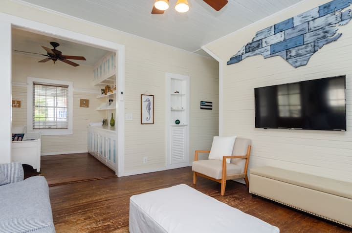 „Good Ole Waves” daleko je najljepša seoska kućica na plaži Carolina Beach. Ova šarmantna vila izgrađena je 1930-ih godina i odlikuju je klasična cedrovina, bezvremenski karakter i udobnost kao u vlastitom domu. Od udobnog interijera do ugodnog trijema, zatvorene bočne verande i sunčane stražnje terase, ova se seoska kuća nudi sve što vam je potrebno za nezaboravan i ugodan boravak.