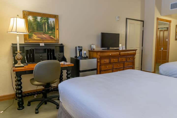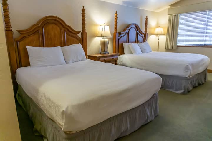 Opustite se u preuređenoj jednoj spavaćoj sobi s dva bračna kreveta, jednom kupaonicom, komodom, HD televizorom ravnog ekrana, noćnim ormarićem sa svjetiljkom, kupaonicom/tušem s granitnim pločama i granitnim okruženjem.