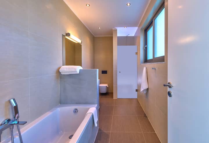 Spavaće sobe imaju velike zidove s prozorima s kojih se pruža pogled na more dok se vi opuštate. Iako svaka spavaća soba ima vlastitu kupaonicu ili tuš-kabinu i elegantan umivaonik, privatna kupaonica ima dodatnu kadu, tuš-kabinu, WC školjku i umivaonik. Ova kupaonica može se upotrebljavati, primjerice, ako se drugi dnevni boravak upotrebljava kao spavaća soba jer se nalazi pored dnevnog boravka.