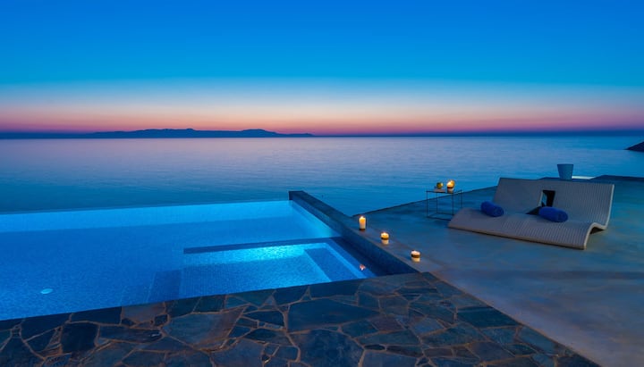 Od minimalističke arhitekture do luksuzne konstrukcije i ekskluzivnog namještaja, ovdje nećete pronaći kompromise. Možete popiti čašu vina i objedovati se hranom pripremljenom od lokalnih sastojaka, a istovremeno biti očarani dubokim plavetnilom Egejskog mora, slušajući nježan zvuk valova i romantični zalazak sunca... ili se možete uroniti u grijanu vodu beskonačnog bazena od 50 m² (uz nadoplatu). Ako vam je draže osvježavajuće more od toplog bazena, krenite prema moru i uronite u slanu vodu u potpunoj privatnosti.