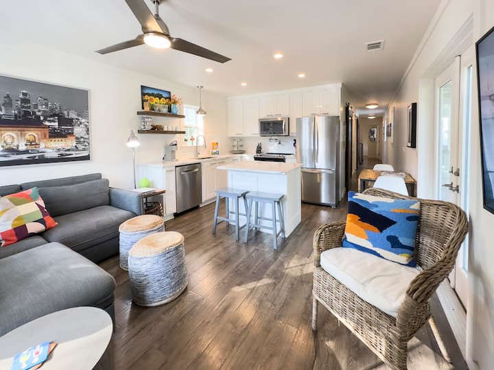 Seoska kućica „Knot in Kansas” skriveni je dragulj, smještena u mirnoj, skrovitoj ulici na kraju grada, koja pruža mnogo privatnosti, a ipak blizu plaže, državnog parka Camp Helen i svih aktivnosti na 30A. Udaljeni ste 6 minuta hoda do plaže Inlet Beach gdje možete uživati u aktivnostima s morskom vodom u zaljevu i slatkovodnim aktivnostima na jezeru Powell (prilikom prelaska preko pješčanih dina postoji nekoliko seta stepenica). Ako želite izbjeći stepenice, možete jednostavno prošetati do druge plaže Inlet Beach u blizini smještaja u roku od 8 minuta. Dok krstarite ovim područjem vidjet ćete seoske kućice na plaži pomiješane s modernim kućama u ovoj staroj, novoj četvrti na plaži.