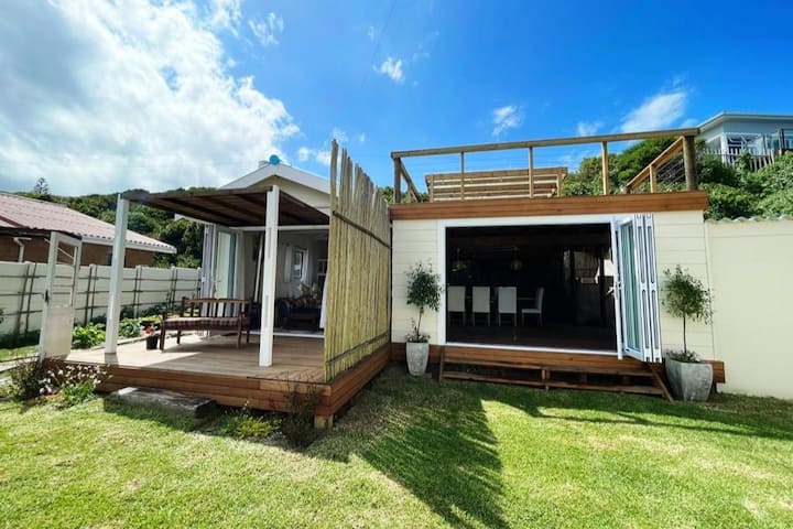 Seoska kućica smještena je u dini s pogledom na netaknutu obalu i nudi rustikalno iskustvo u zatvorenom prostoru. Dakle, prilično je jednostavno, ali čisto i udobno. Izvana je prostran i lijepo uređen, a ima i veliku terasu. The deck area is perfect for sunrise coffee 's and sunset sundowners; as well as refreshing yoga/pilates sessions with panoramic ocean views and the sound of waves wing all around you. U donjem dijelu nalazi se veliki prostor za roštilj, vanjski tuš te prirodna flora i fauna.